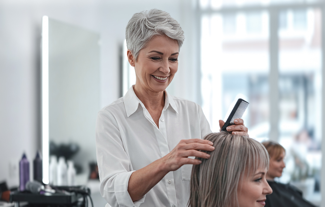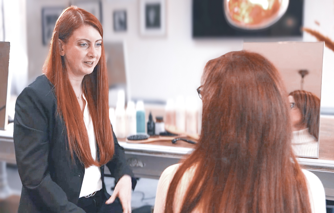 Kerstin Serr ist eine erfahrene Haarpflege-Expertin mit über 25 Jahren Berufserfahrung. Ihre Karriere begann mit einer klassischen Friseurausbildung, in der sie bereits früh erste Erfahrungen mit Haarverlängerungen und Produkten für Kopfhaut- und Haarwuchslösungen sammelte. Schon während ihrer Ausbildung setzte sie diese Techniken erfolgreich um und entwickelte eine Leidenschaft für nachhaltige Haarpflege.